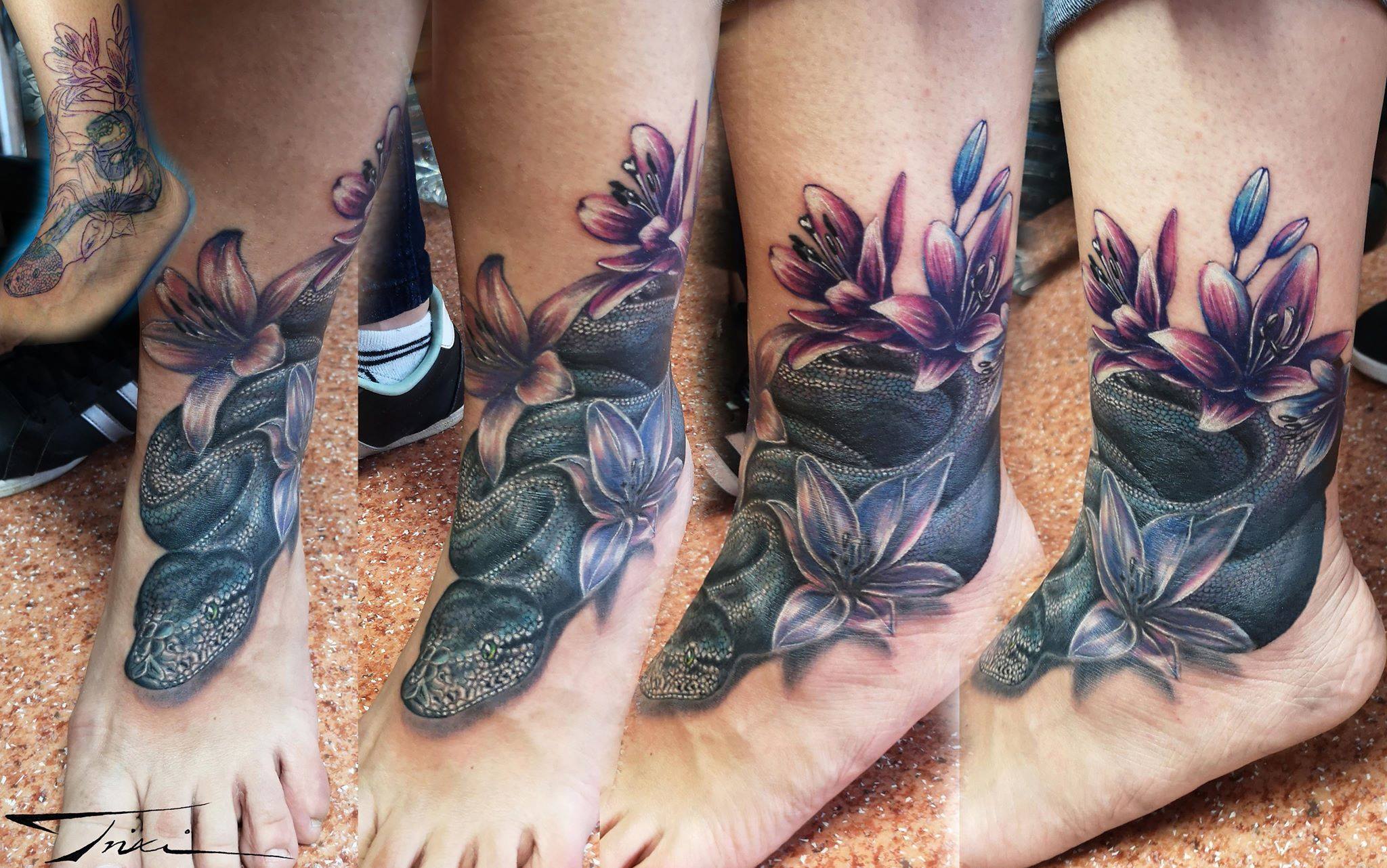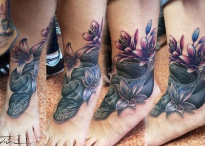 Sziasztok Papp Trixi vagyok. Amióta az eszemet tudom rajzolok és festek, de sosem volt szívem eladni a munkáimat emiatt kezdtem el tanulni a tetoválást, hogy mindenki a maga bőrén “vehesse meg / vihesse el” az alkotásaimat. Nagyjából 1,5 éve dolgozom a szakmában, imádom a realisztikus témát, mind a színes, mind a fekete – fehér tetoválások elkészítése közel áll a szívemhez, de bármilyen más stílusban kért munkát örömmel elvállalok. Szeretem a kihívásokat emiatt szívesen csinálok takarásokat is.
